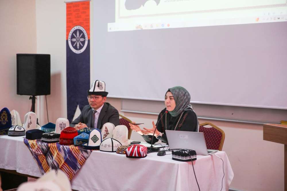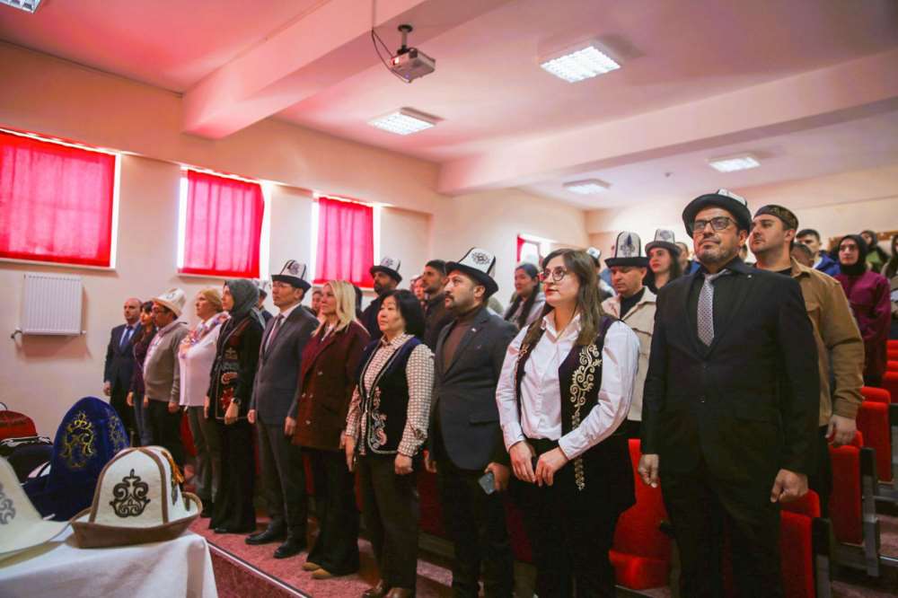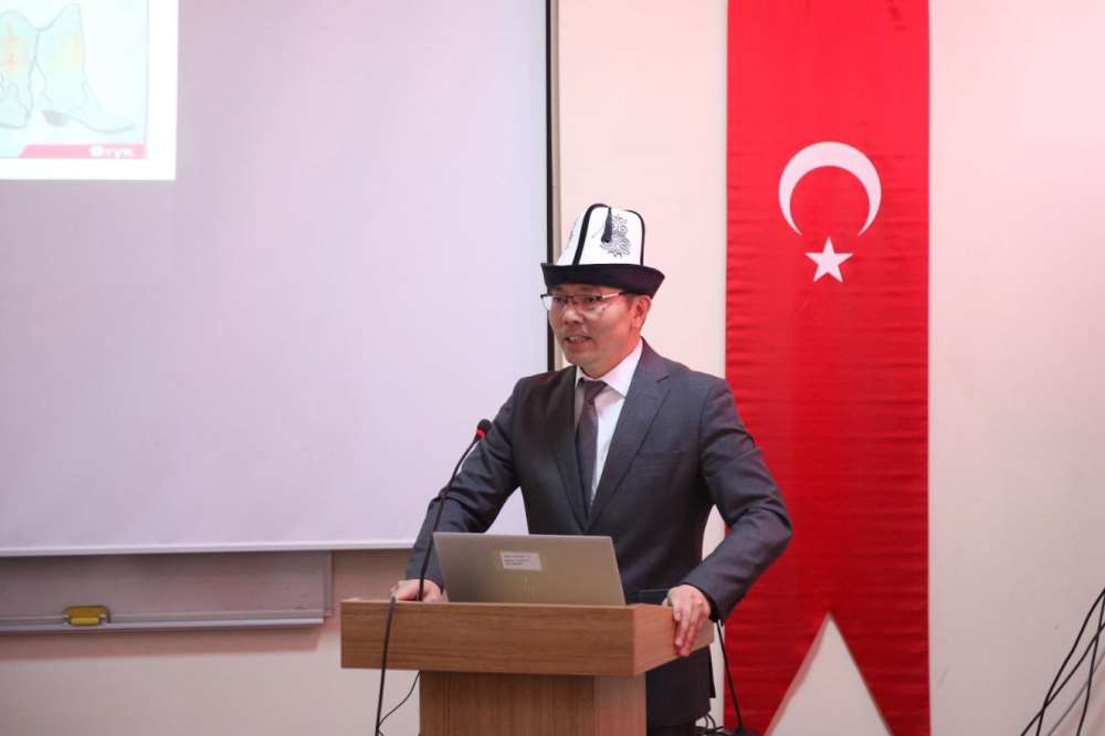 Fakültemiz Çağdaş Türk Lehçeleri ve Edebiyatları Bölümü ile SKS Türk Dünyası ve Akraba Toplulukları Kulübü (TÜDAT) iş birliğiyle “Türk Geleneksel Başlıkları ve Kalpak” konulu konferans düzenlendi. Konferansta Türk dünyasında başlık geleneğinin kültürel ve sembolik anlamı akademik perspektifle ele alındı. Konferansın ilk konuşmacısı Dr. Öğr. Üyesi Ezgioya Malkoç, Türk kültüründe başlığın yalnızca bir giyim unsuru değil; toplumsal statüyü, kimliği ve kültürel aidiyeti yansıtan önemli bir sembol olduğunu ifade etti. Malkoç, Türk dünyasından örnekler üzerinden başlık geleneğini göstergebilimsel açıdan değerlendirdi. Konferansın ikinci konuşmacısı Prof. Dr. Mayrambek Orozobayev ise Kırgız kültürünün önemli simgelerinden biri olan Ak Kalpak üzerine değerlendirmelerde bulundu. Orozobayev, Kırgız toplumunda kalpağın onur, haysiyet ve aidiyetin sembolü olarak kabul edildiğini belirterek bu geleneğin kültürel ve tarihsel boyutlarına dikkat çekti. Program, Türk dünyasının zengin kültürel mirasının akademik bir bakış açısıyla ele alınmasının önemine dikkat çekilmesiyle sona erdi.