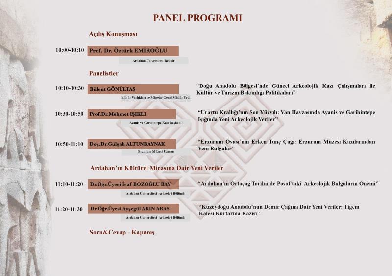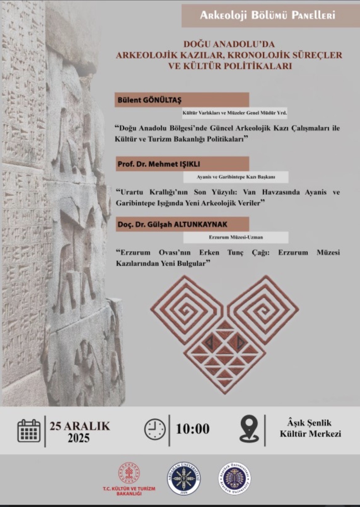 Ardahan Üniversitesi, İnsani Bilimler ve Edebiyat Fakültesi ile Arkeoloji Bölümümüz tarafından düzenlenecek olan "Doğu Anadolu’da Arkeolojik Kazılar, Kronolojik Süreçler ve Kültür Politikaları" başlıklı panelimizde; Doğu Anadolu Bölgesi'ndeki güncel arkeolojik çalışmalar, Urartu Krallığı'na dair yeni veriler ve bölgenin kültür politikaları ele alınacaktır. Bu önemli etkinliğe teşrifleriniz bizleri onurlandıracaktır.
