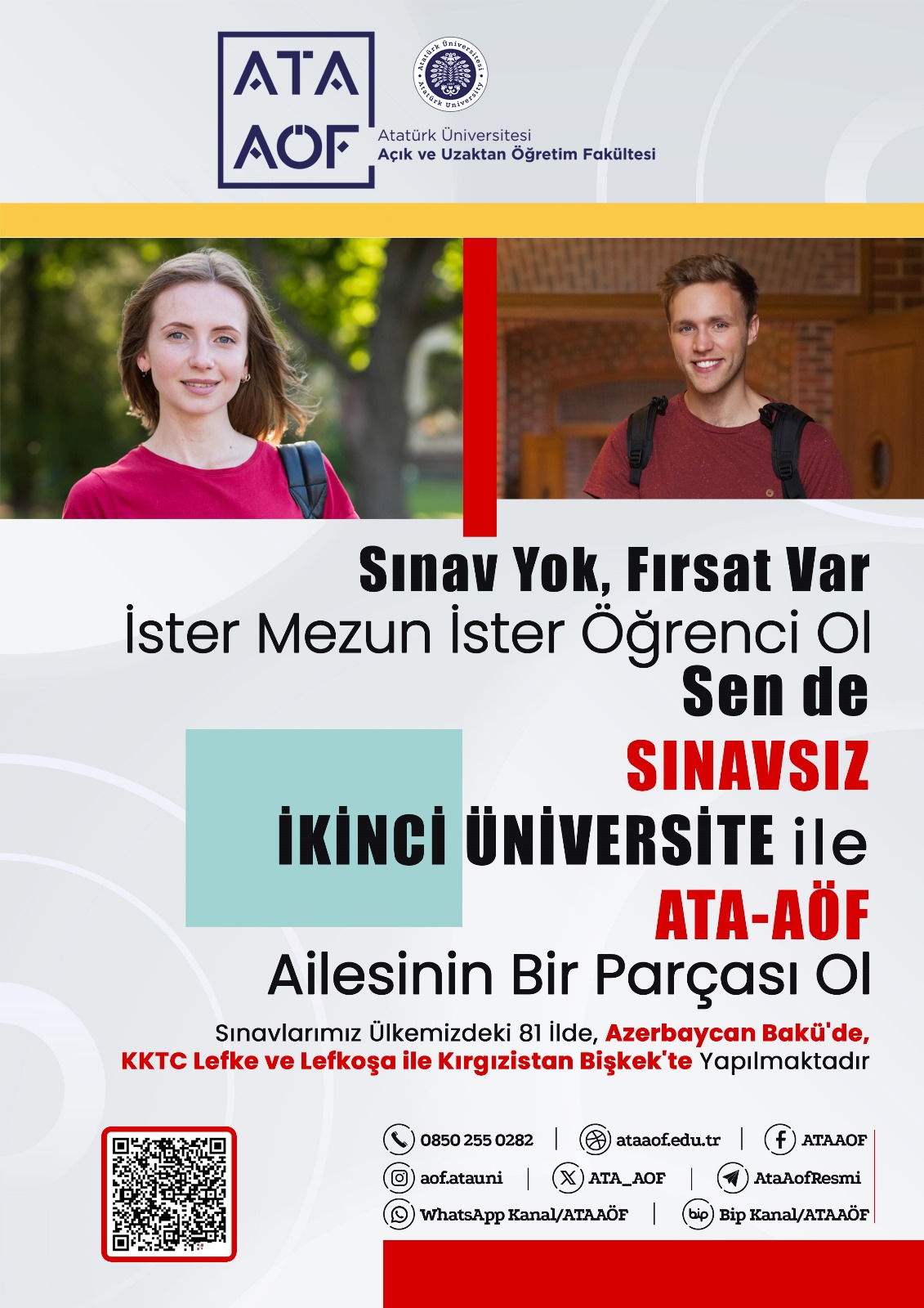 ATA-AÖF Sınavsız İkinci Üniversite Duyurusu