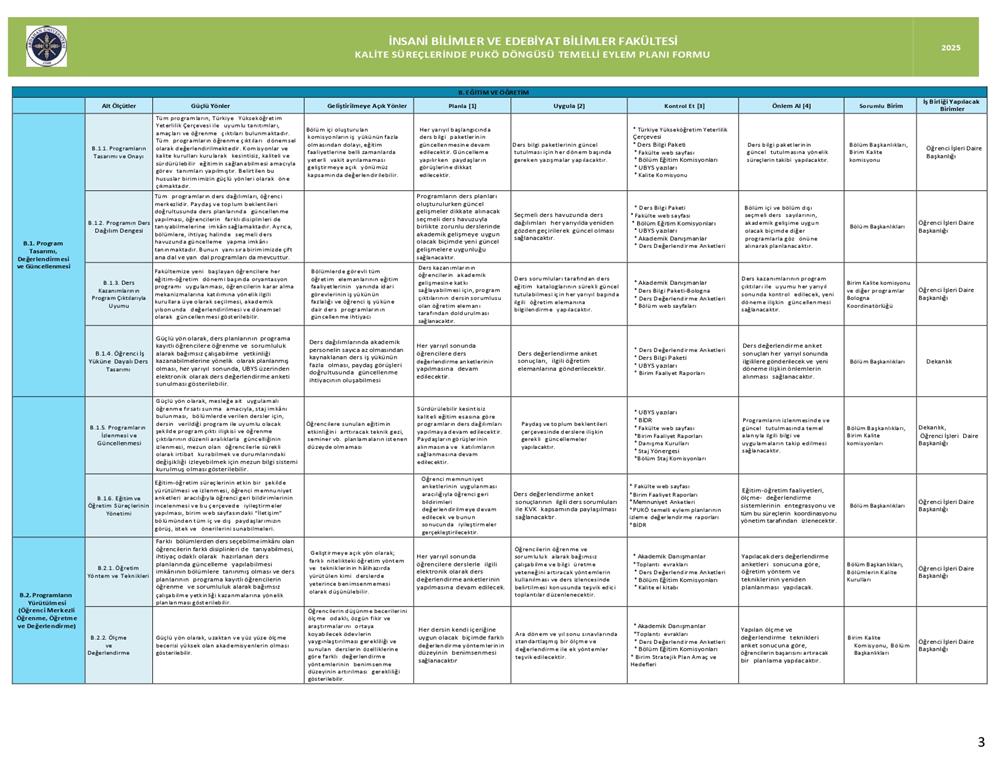 PUKÖ Döngüsü Temelli Eylem Planları için